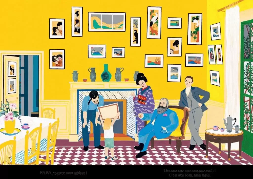 Nell’albo illustrato “Papà guarda il mio dipinto!” di Anaïs Brunet (24 ore Cultura), Michel vuole mostrare il suo dipinto padre e corre con in testa il quadro per tutto il giardino: attraversa il ponte giapponese sopra al laghetto di ninfee, segue il sentiero costeggiato di lavanda e finalmente arriva davanti alla casa rosa.